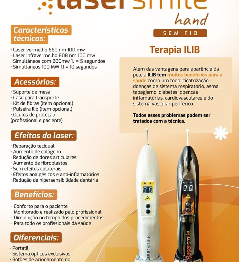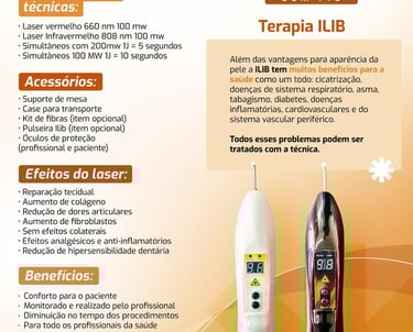 • Laser vermelho, Laser infravermelho, os dois simultâneos e Terapia Ilib.